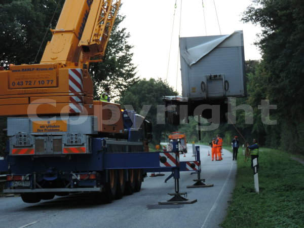 Dieser LKW verunglückte am 22.09.2015 auf der B404 in Höhe von Kirchbarkau. Der Sattelzug hatte 24t Milchpulver geladen. Die Ladung wurde vor der Bergung umgeladen.